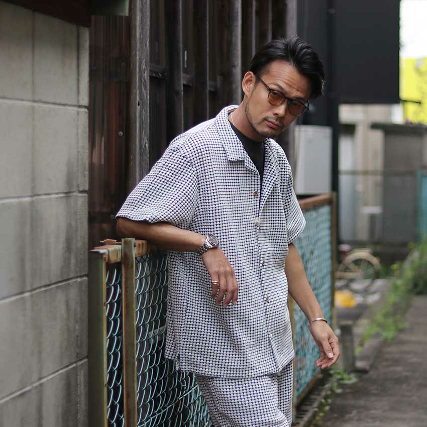 ラグジュアリーな休日ウェアを提案するSEAGREEN(シーグリーン)の、ブランドを代表するビッグワッフル開襟のTシャツ。