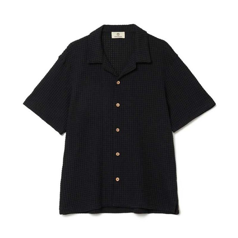 SEAGREEN/シーグリーン ビッグワッフル開襟シャツ MSEA25S8318 ロイヤル ブラック プルオーバー