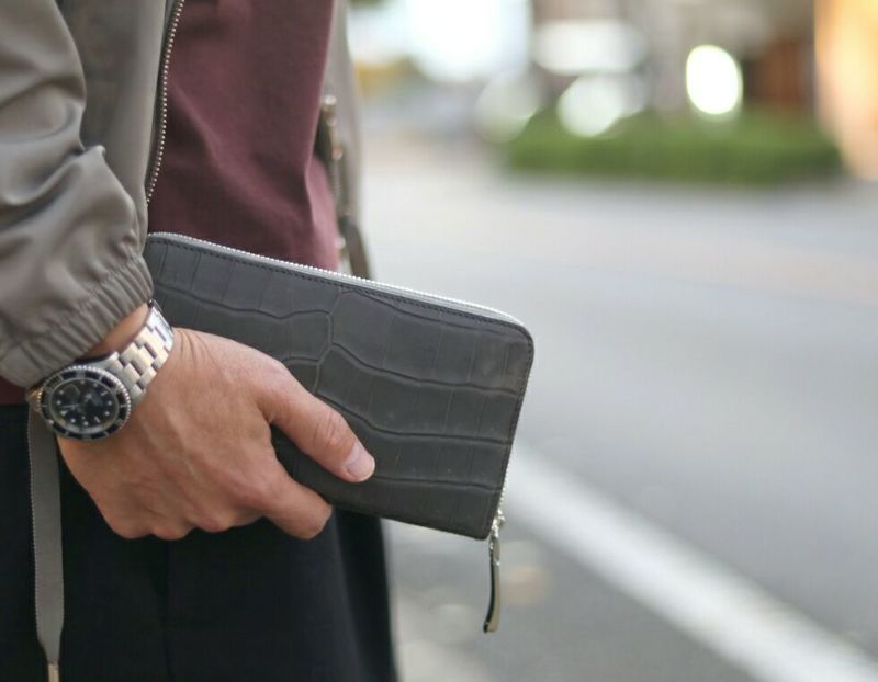 程よく感じられるクロコダイルの模様と艶感が大人の色気を醸し出す逸品です。