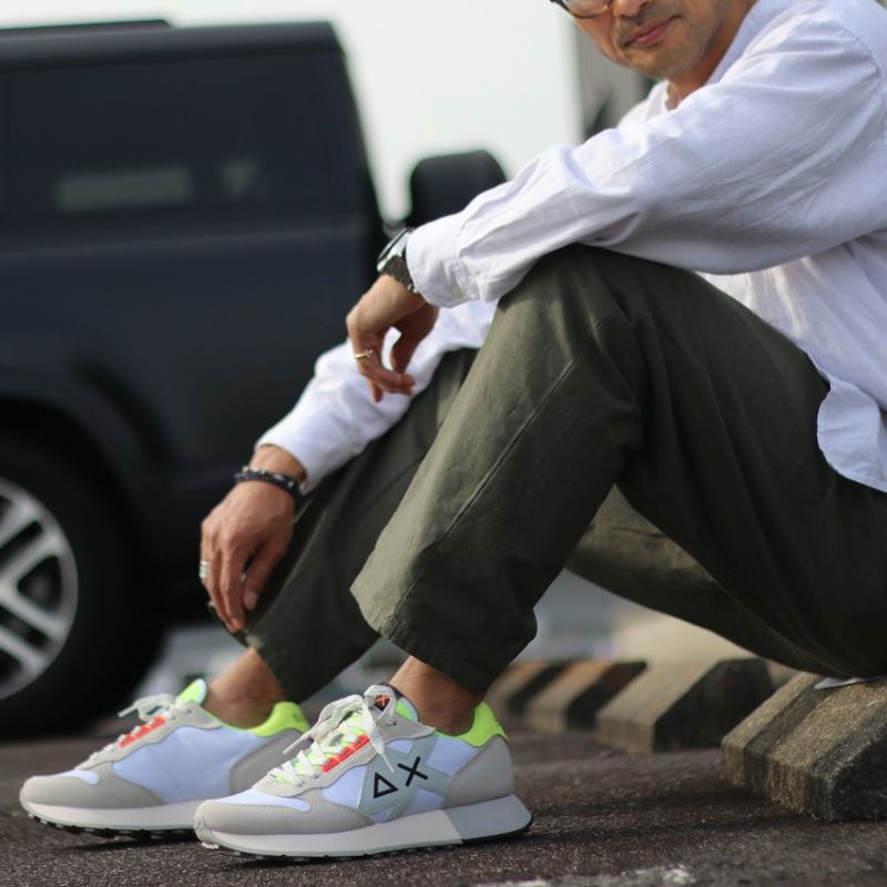 遊び心のあるデザインながらも、スウェードを使用したスニーカーは高級感があり、大人の品格が上がる一足となっています。