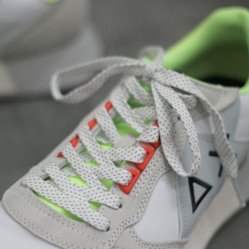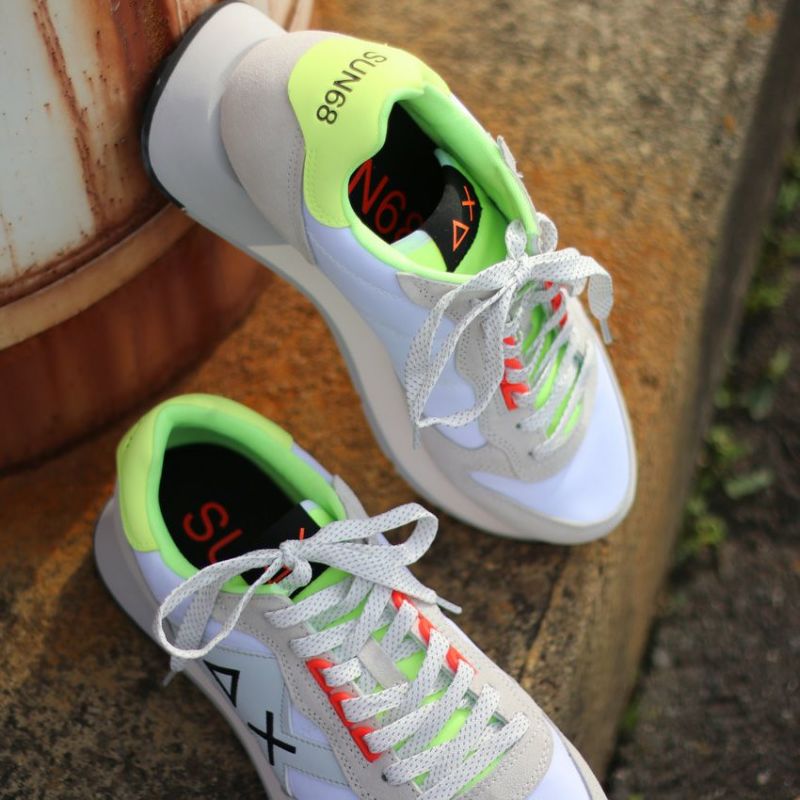 また、部分的にあしらわれた蛍光色の切り替えが目を惹く一足に仕上がっています。
