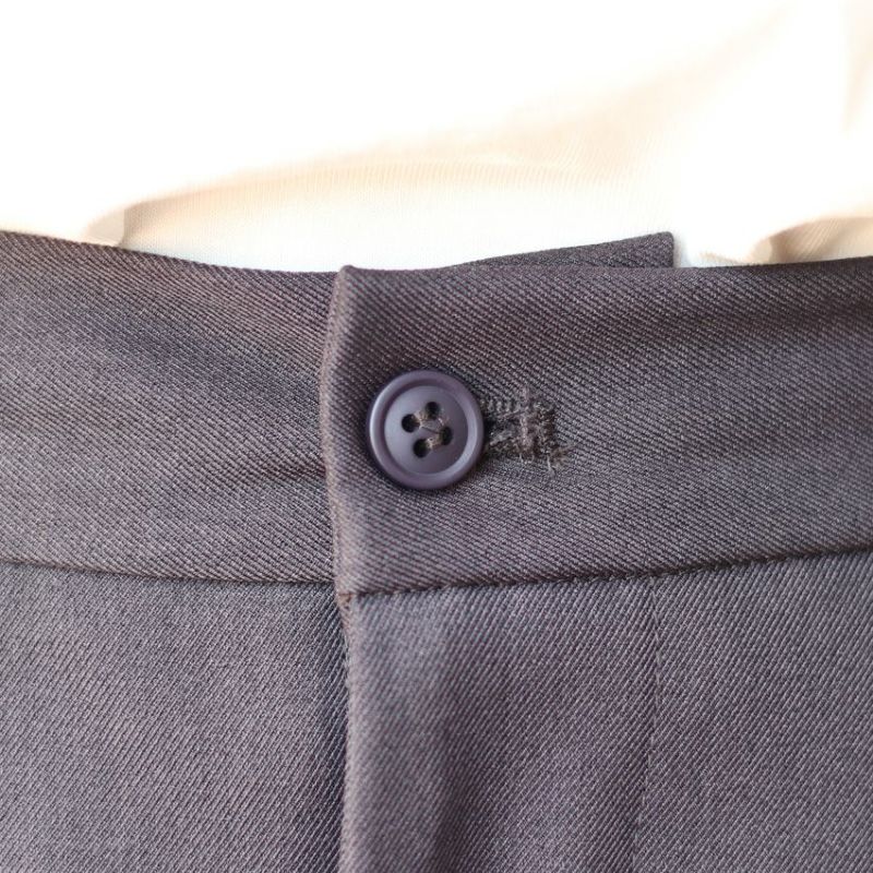フロントのファスナー開きや、ベルトループ、タックデザインなどの本格仕様を取り入れて、きちんと感を演出。