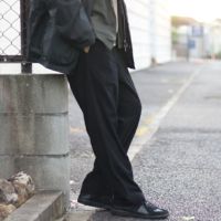 シルエットは、リラックス感のあるイージーパンツ仕様ながら、センタープリーツと玉縁ポケットを採用することで、上品さときちんと感を両立。