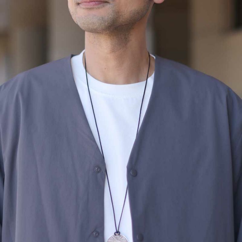 パーカーやシャツ、タートルネックなど首、襟のあるものとの相性◎。