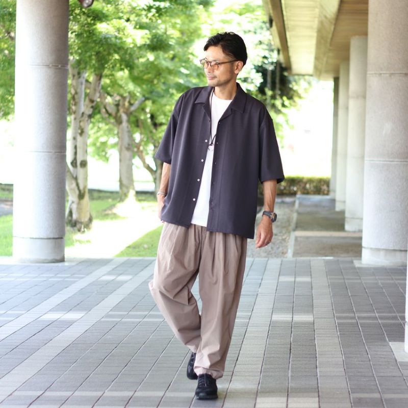 きれいめスラックスを合わせてスマートに着こなすのはもちろん、同素材のショーツ(品番:D25S-B023)とセットアップでの着用もおすすめです。
