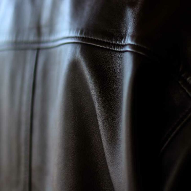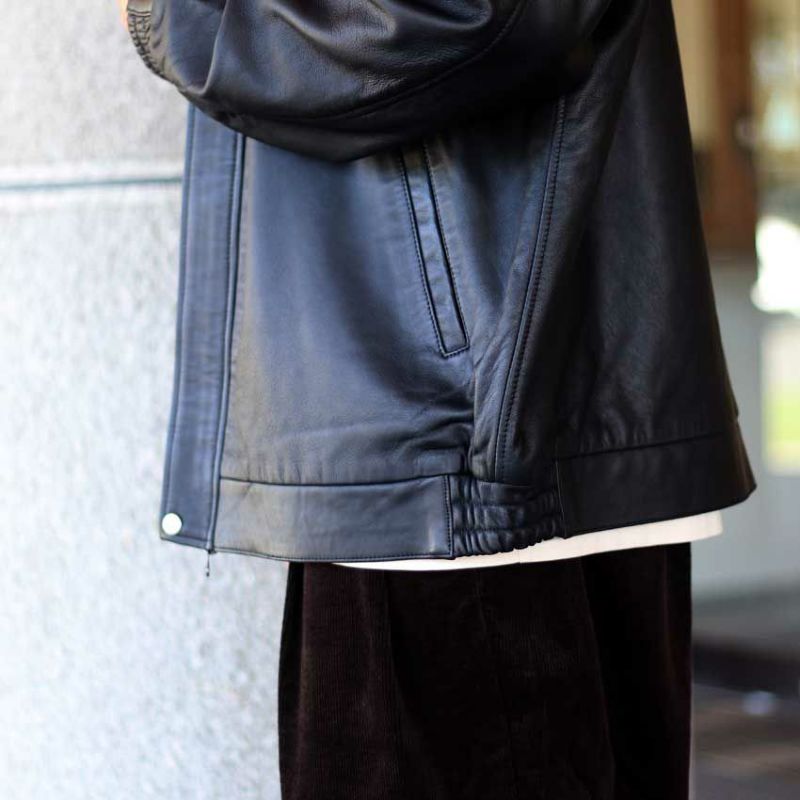 90年代古着を思わせる、男らしさと抜け感を兼ね備えたレザーブルゾン 。