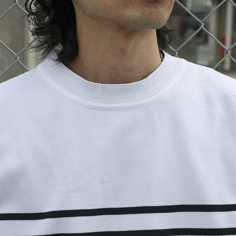 春夏スタイルに着回しがしやすい王道ボーダー。肩付近にはジャガードの切替が施されており、シンプルながらさりげない遊び心が表現されています。