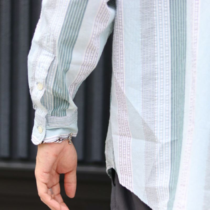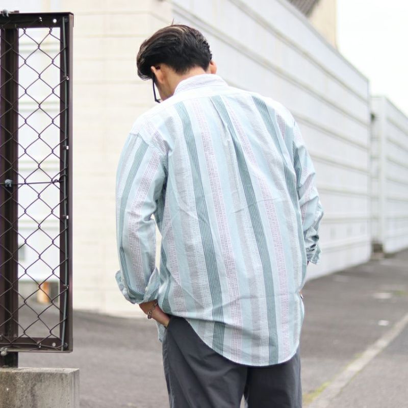 JOHNBULL/ジョンブル ストライプパッチワークシャツ FY241LSC07 袖シャツ グリーン ストライプ パッチワーク