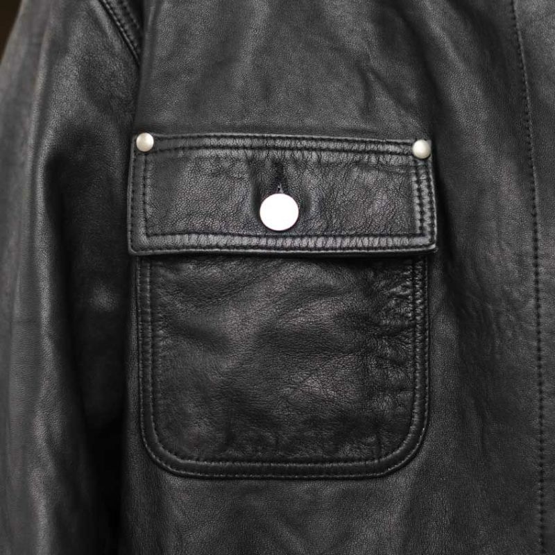 無骨でありながらも洗練された佇まいを持つこのレザーカバーオールは、ディテールの一つひとつにまでこだわり抜かれています。