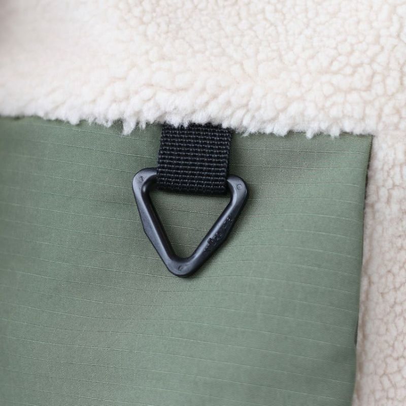 ボアブルゾンでは、パイピングや切り替え箇所全てをグリーンで統一し、アクセント箇所が多いながらもデザインにしつこさを感じさせないデザインとなっています。