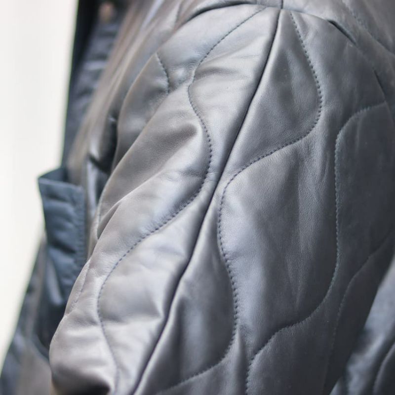 CWU-Pのデザインをもとに要所にヘビーナイロンとレザーでマテリアルコンビにしたアイテム。