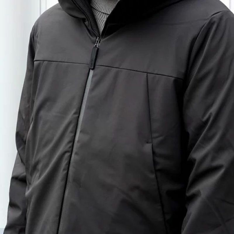 高密度ポリエステルシェルを採用し、余分なデザインを省いたスタイリッシュで都会的な仕上がりに。