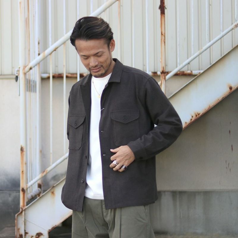 両胸にはフラップポケットを施したワークジャケットをベースに