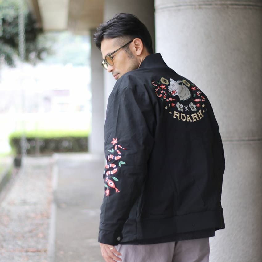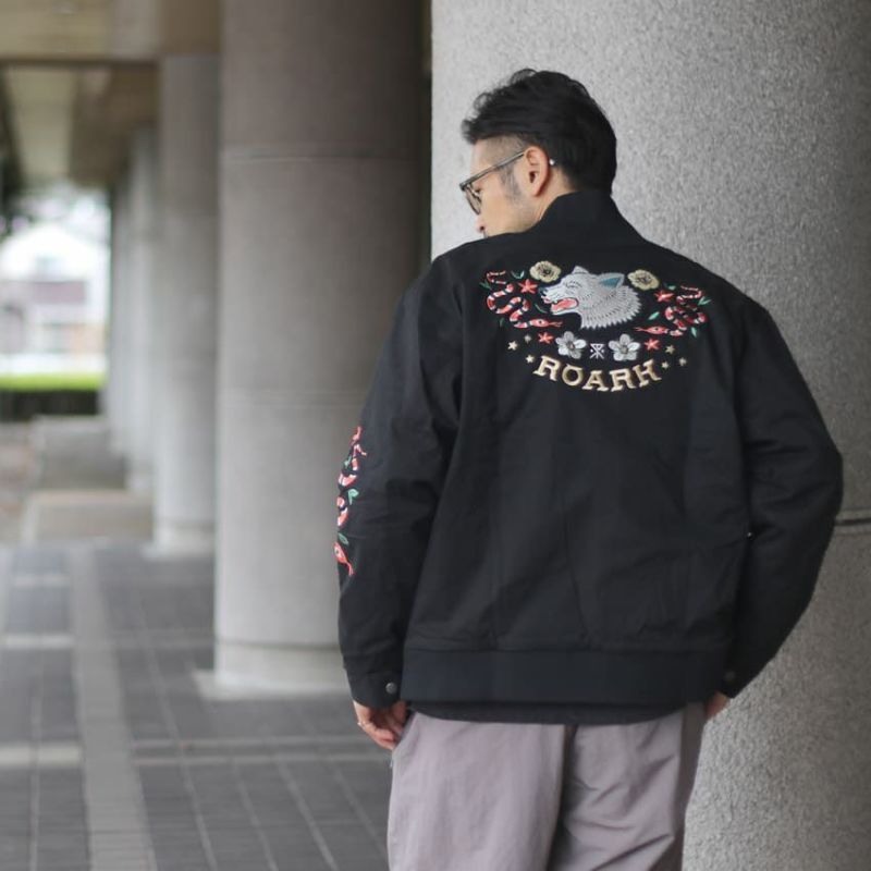 光沢のあるアニマルモチーフを背面と袖にあしらったエッジの効いたデザインは、ロアークならでは。