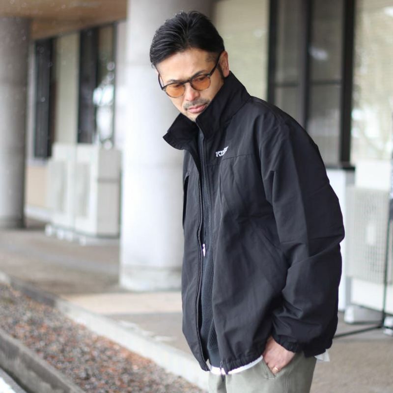 独特のシワ感と軽さのあるナイロン生地を使用したスタンドネックブルゾン。