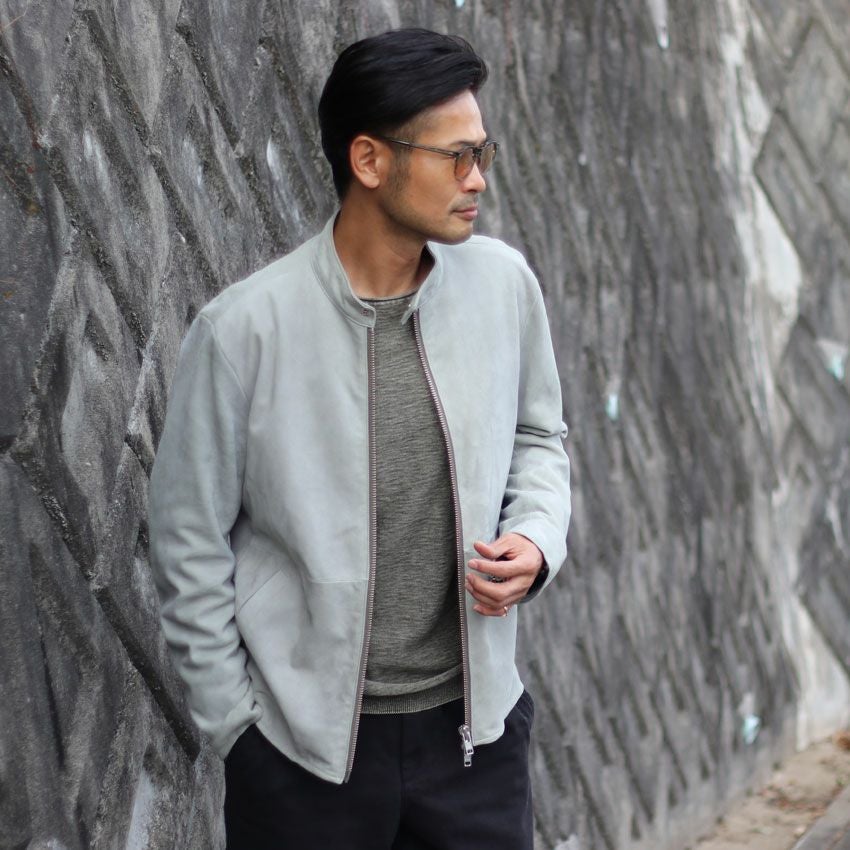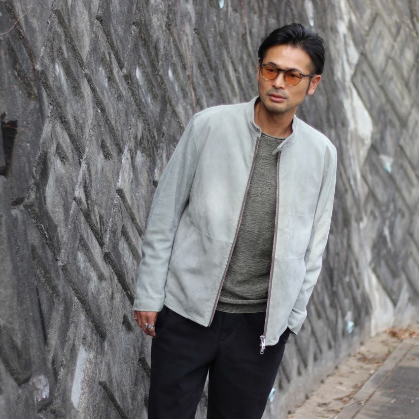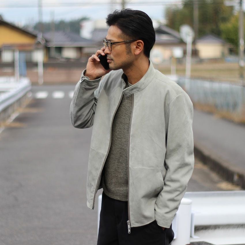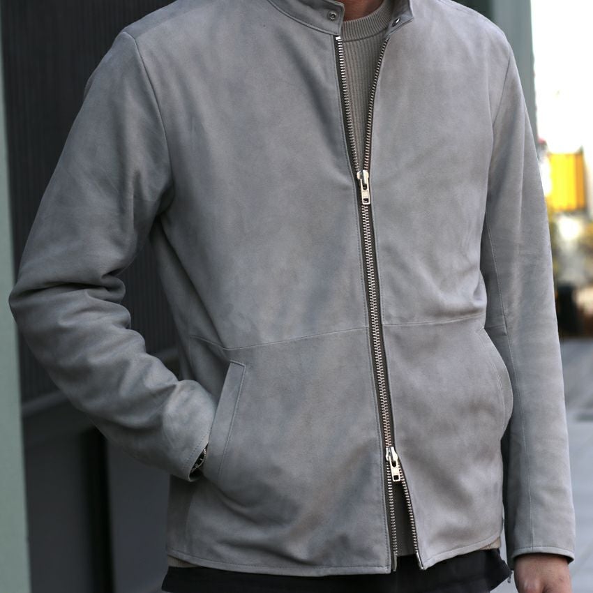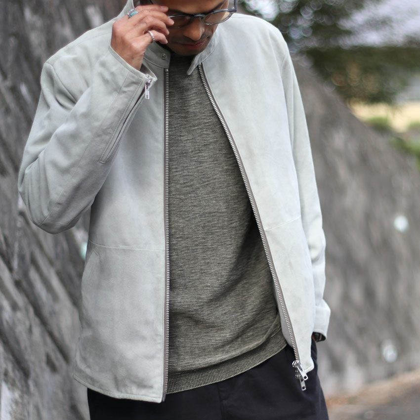 他の画像を見る Shunal スウェードシングルライダース GOAT SUEDE BSN アイスグレー ライダースジャケット 革ジャン 本革 オーダーメイド ¥ 104,500 税込 お気に入りに登録する