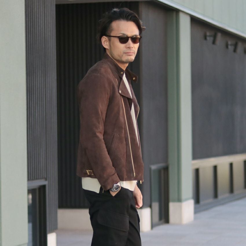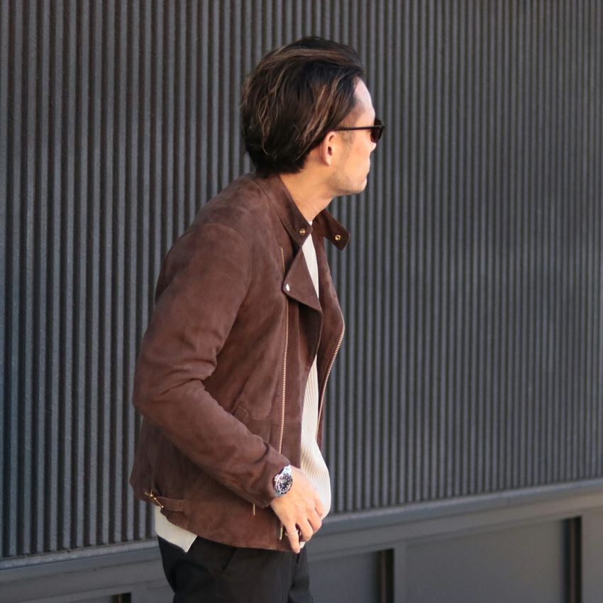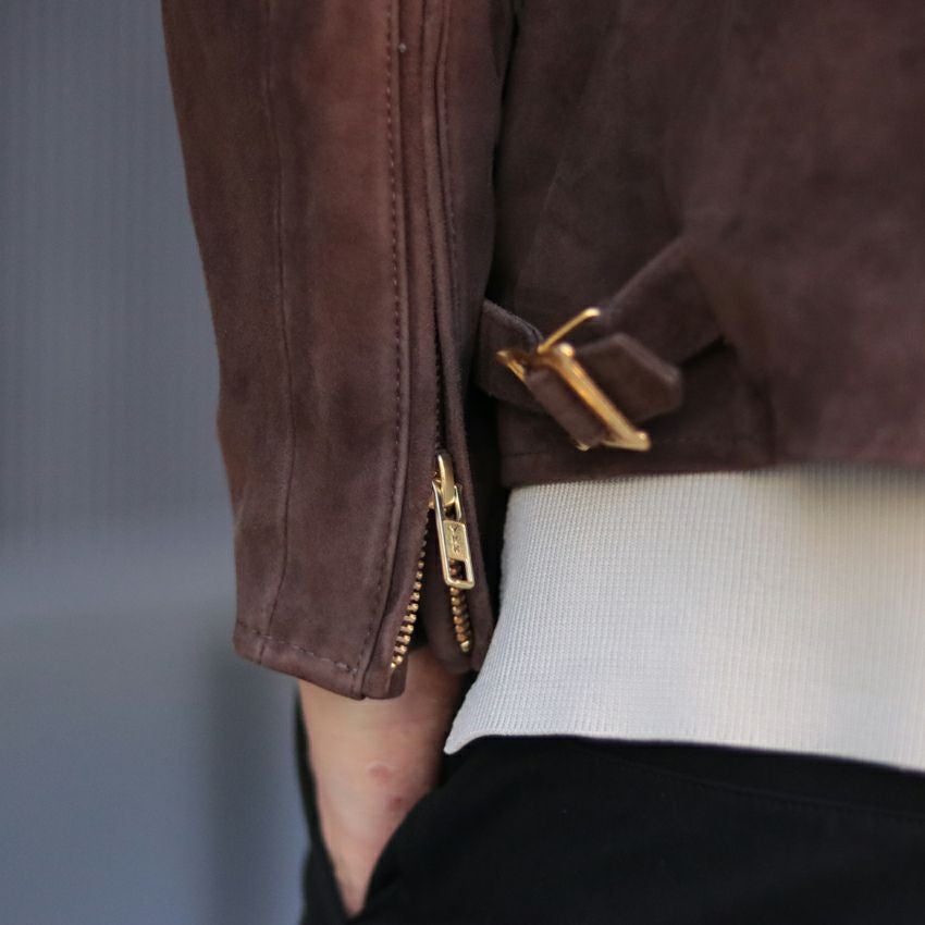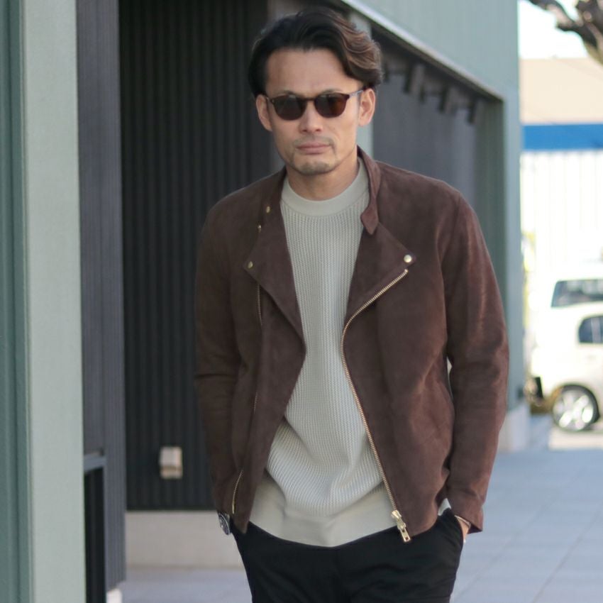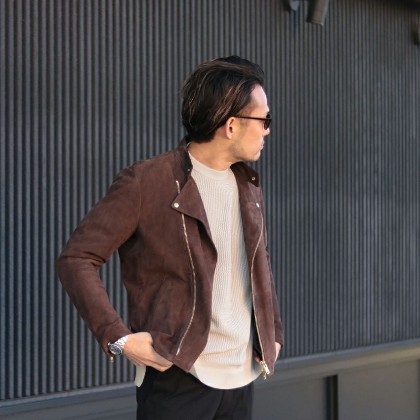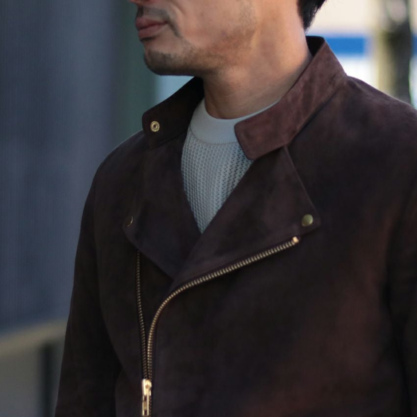 他の画像を見る Shunal スウェードシングルライダース GOAT SUEDE BSN アイスグレー ライダースジャケット 革ジャン 本革 オーダーメイド ¥ 104,500 税込 お気に入りに登録する