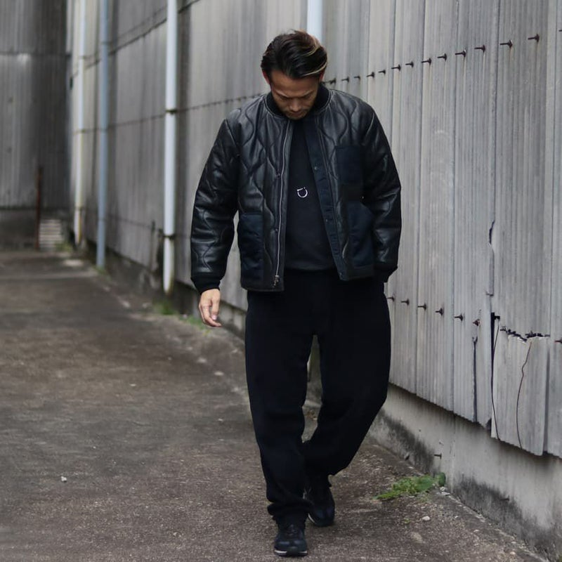CWU-Pのデザインをもとに要所にヘビーナイロンとレザーでマテリアルコンビにしたアイテム。