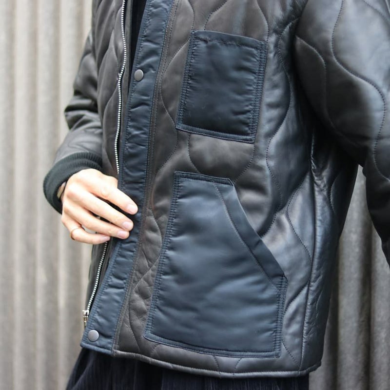 全てのパーツをレザーで作らず、ポケットや前立てをヘビーナイロンにすることで、