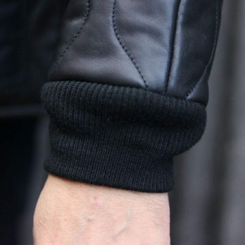 素材:(表地)羊革(裏地)ポリエステル100% 別布部分ナイロン100% 中綿ポリエステル100% リブ部分アクリル100%