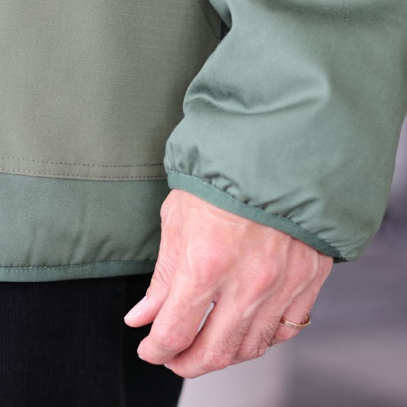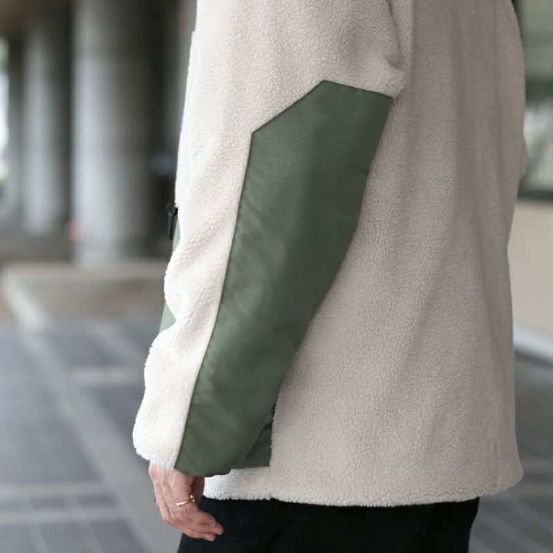 ボアブルゾンでは、パイピングや切り替え箇所全てをグリーンで統一し、アクセント箇所が多いながらもデザインにしつこさを感じさせないデザインとなっています。
