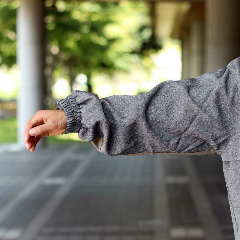 袖裏には異素材を組み合わせ、デザインにアクセントを加えつつ、腕通りの良さにも配慮。裏地には防風性に優れた機能素材を採用し、冷たい風をしっかりとブロックしてくれるため、春や秋はもちろん、肌寒い日にも安心して着用いただけます。