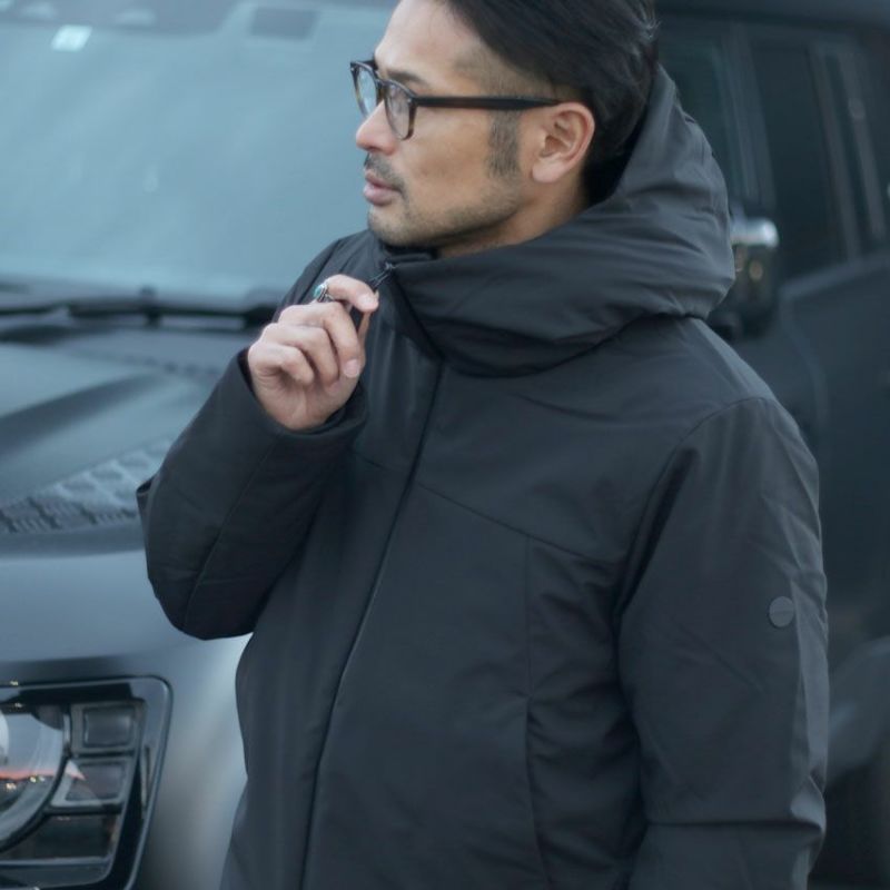 高密度ポリエステルシェルを採用し、余分なデザインを省いたスタイリッシュで都会的な仕上がりに。