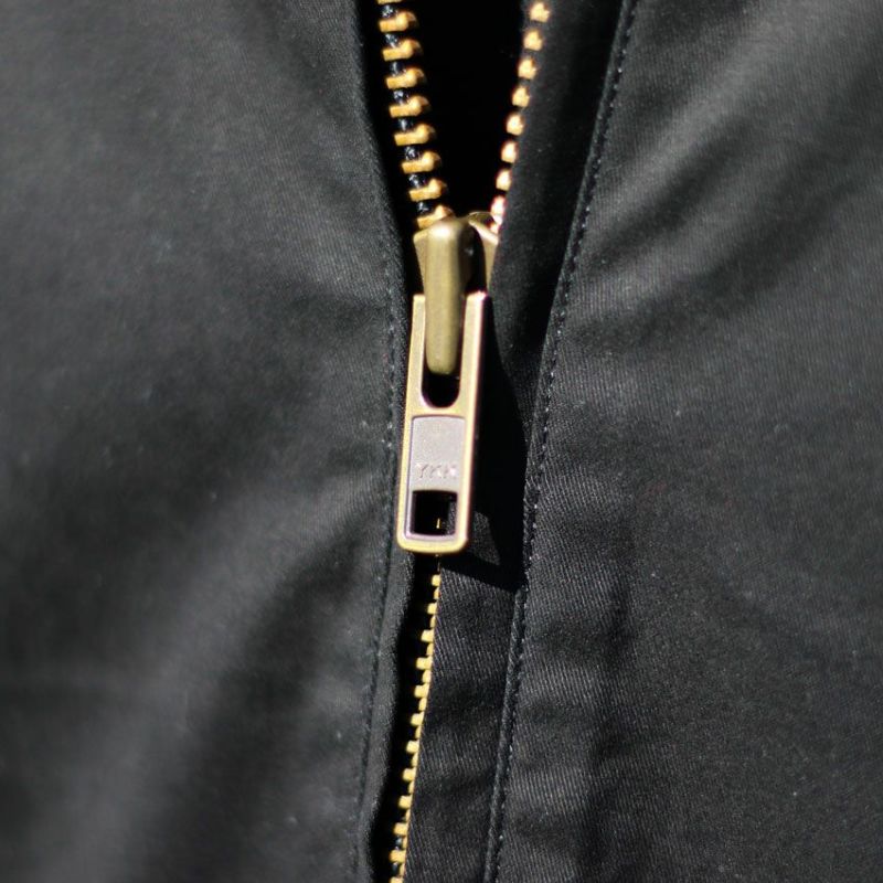 生地は表地にタフでストレッチ性のあるややピーチ起毛したコットンツイル生地を使用し、内側はバーガンディカラーの光沢のあるポリエステルコットン生地を使用しています。
