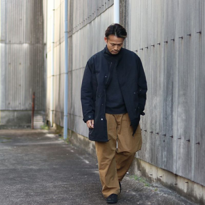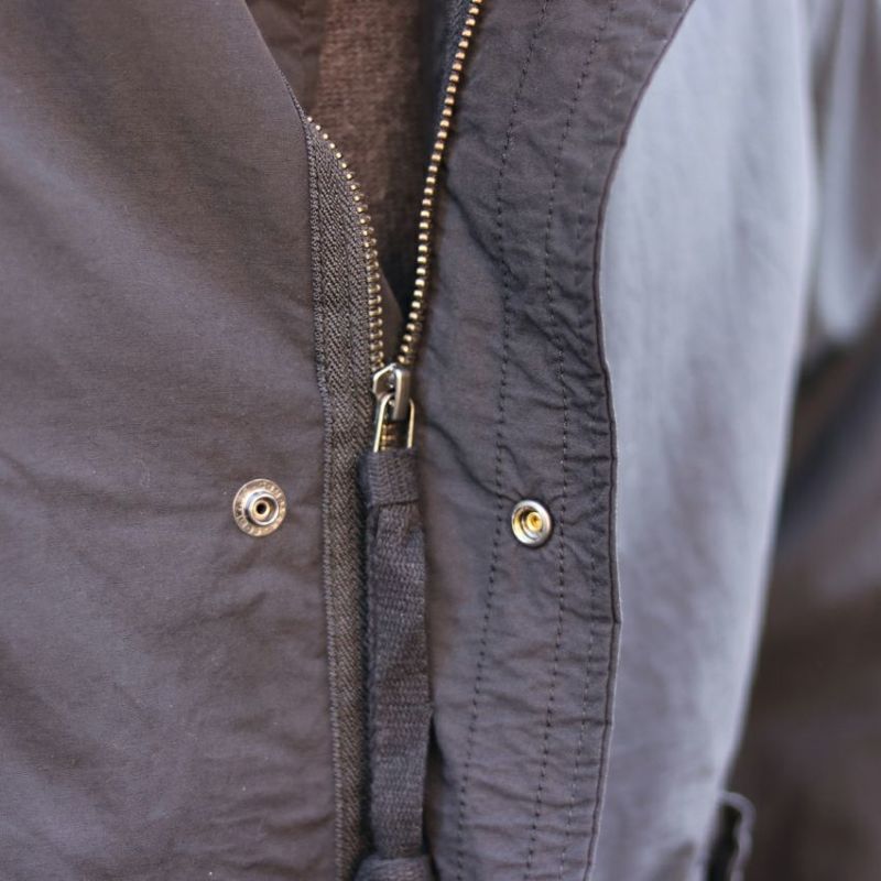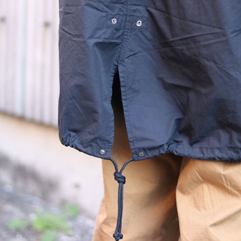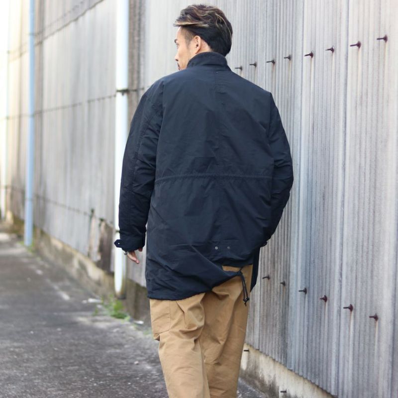 ウェザークロスを使用しているので軽量で着やすいモッズコートになっています。
