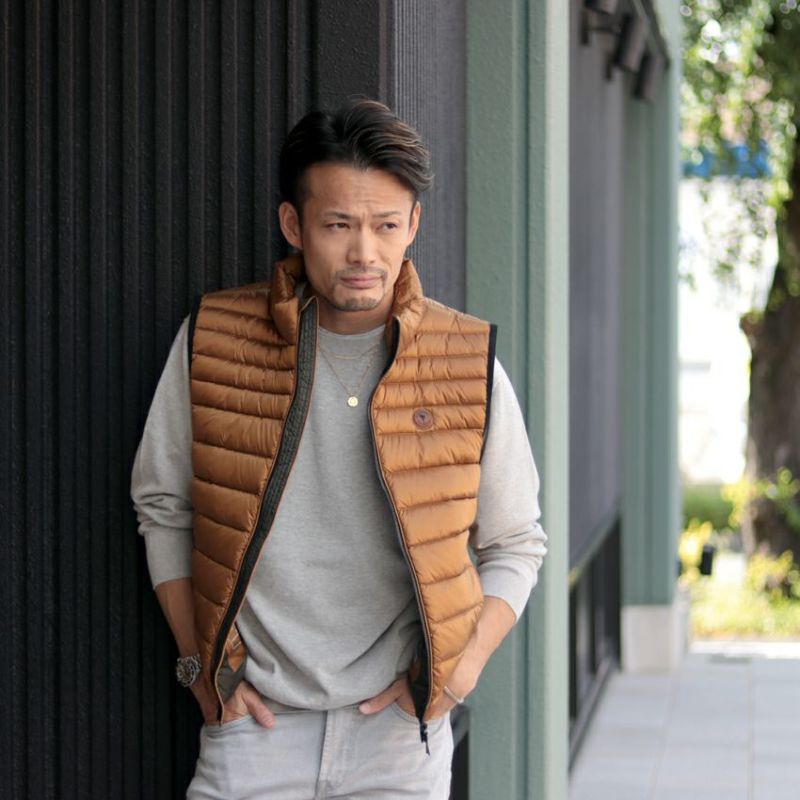 トレーナーやパーカーの上から気軽に羽織れるダウンベストは、