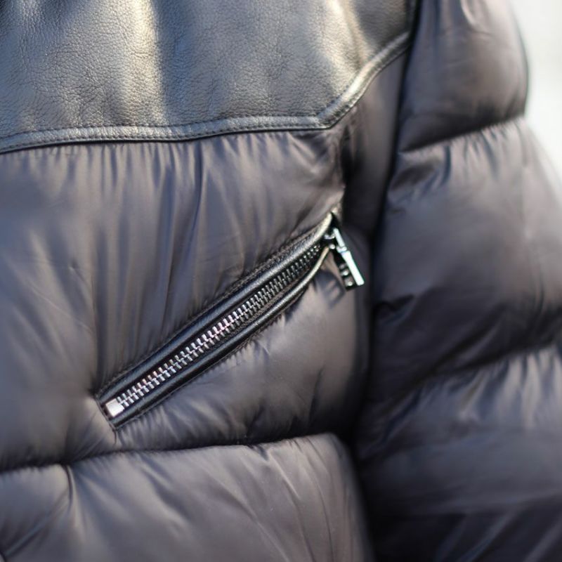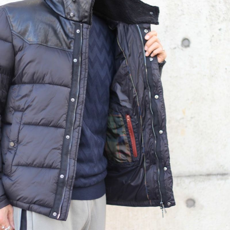 上品なレザーとナイロン、どちらも程よい光沢感をみせ、大人らしいラグジュアリーな側面を見せてくれる1着です。