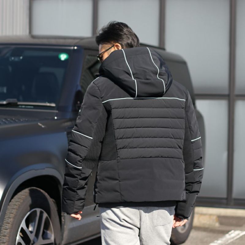 高級ダウンブランドでは珍しくない切り替え+細身シルエットのダウンでも、こちらはひと味違う唯一無二のデザインとなっています。