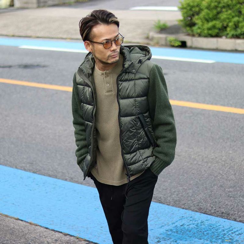 中綿入りのボディーとニットを組み合わせたコンビネーション。