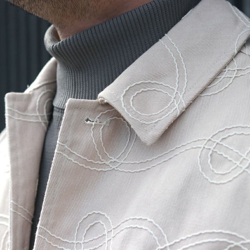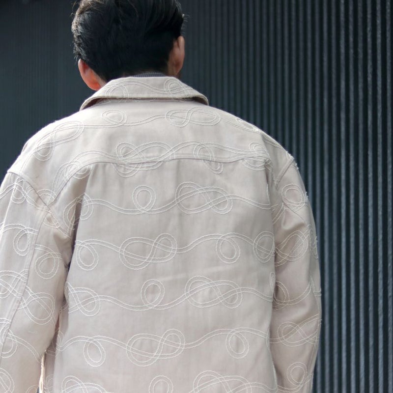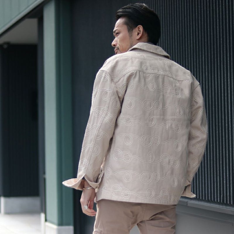 スコッチアンドソーダの刺繍が目を惹くシャツジャケット。