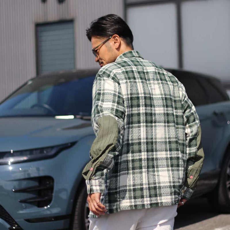 フロントの異素材ポケットとエルボーパッチが、洒落感をさらに加速。
