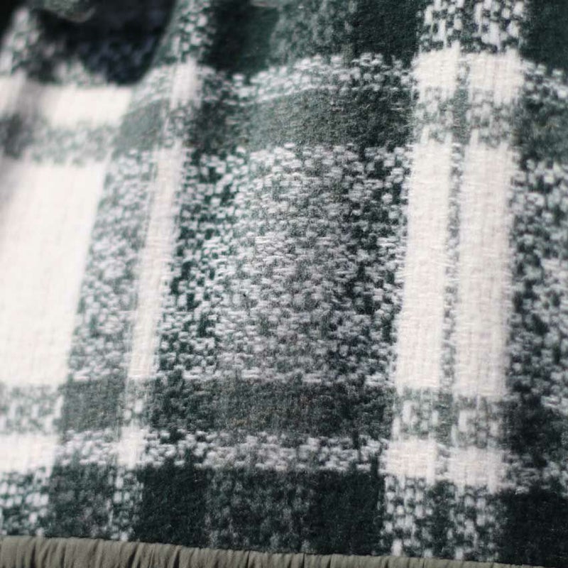 程よい起毛感が秋冬らしい季節感を演出するチェック柄の生地は、軽やかな着心地ながらもしっかりと存在感を放ちます。