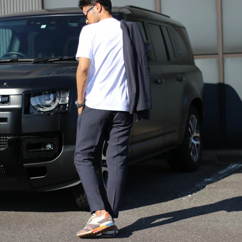 セットアップで着用して、ビジネス使いはもちろん、カジュアルなTシャツを合わせてデイリー使いにも最適です。