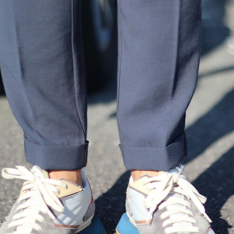 センタープレス仕様や、ダブルの裾がスタイリッシュに見せてくれます。