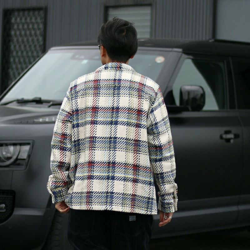 やや厚みがある質感でシャツとしてはもちろんのこと、ライトアウター感覚で着用できるアイテムです。