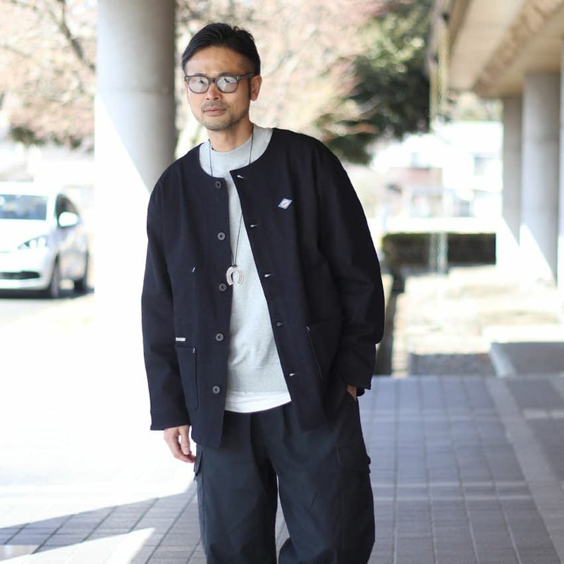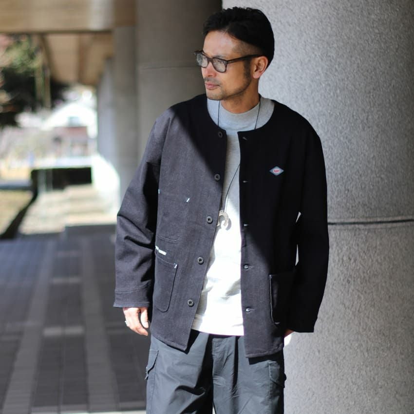 ノーカラータイプは珍しくコーディネートのアクセントに。