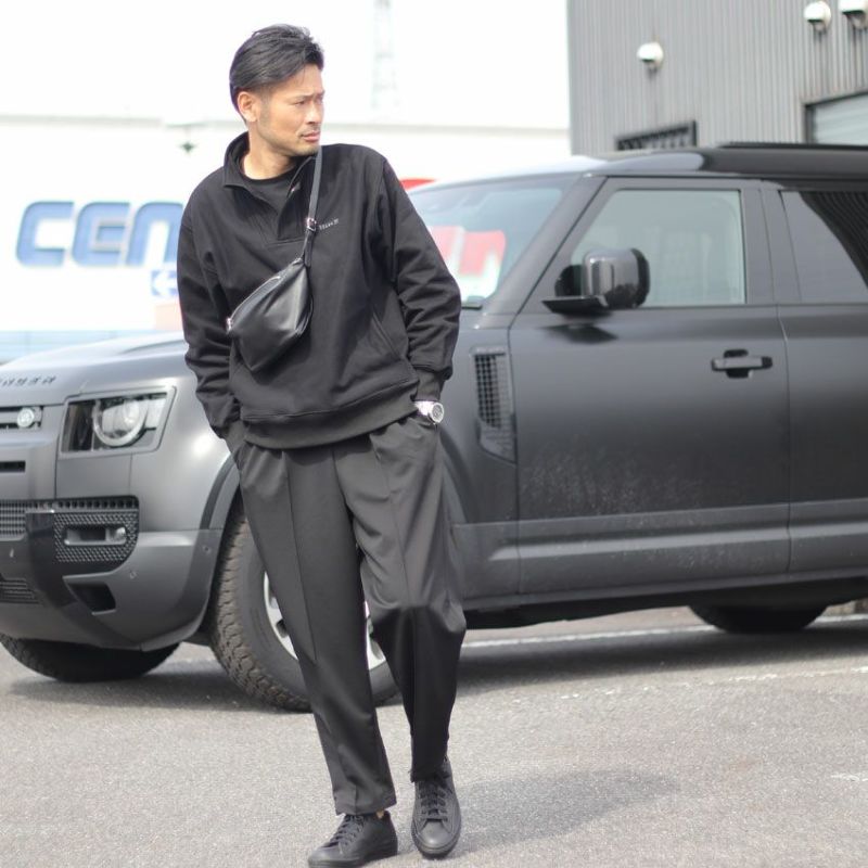 ヌバックレザーとラバーを組み合わせたオールブラックモデルは、レザー特有の重厚感が漂う高級感のある仕上がり。