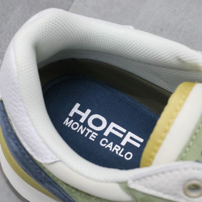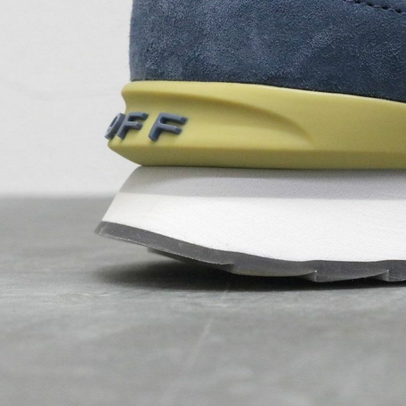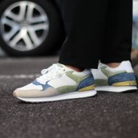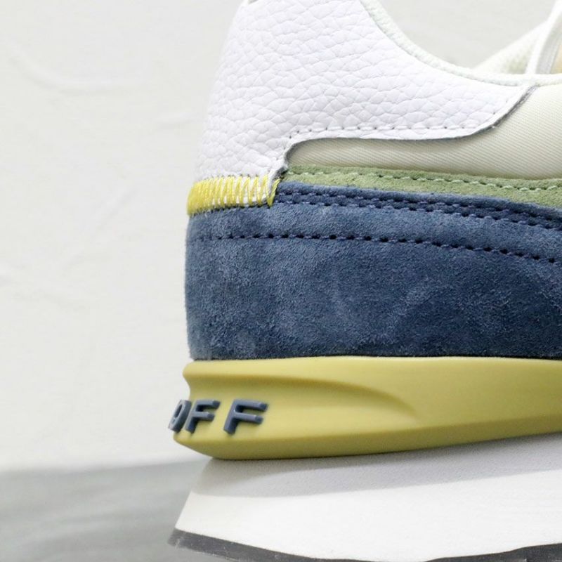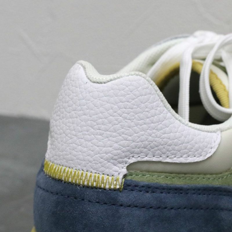 ベージュベースに、ブルーやグリーン、イエローのくすみカラーをコンビした大人スニーカーに仕上がりました。