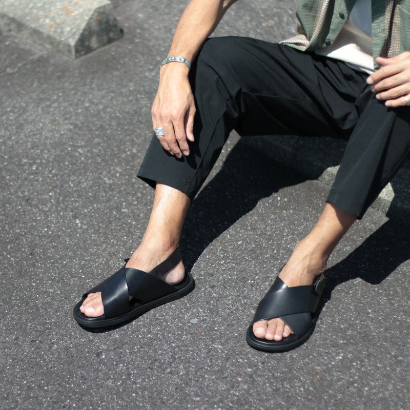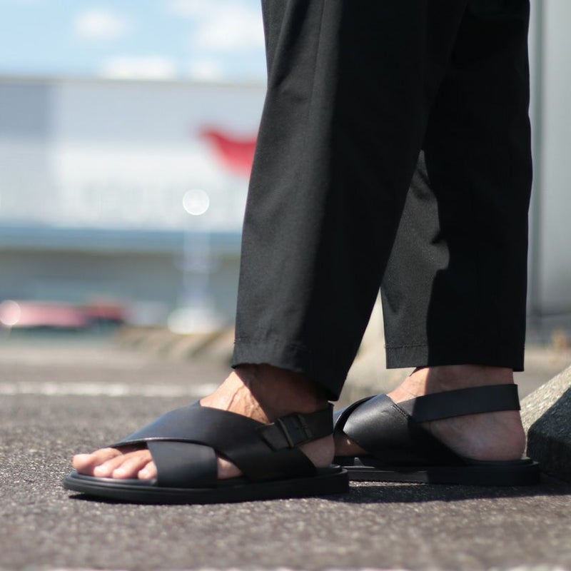 クロスストラップが甲を包み込み、フィット感と安定感が心地良い一足です。