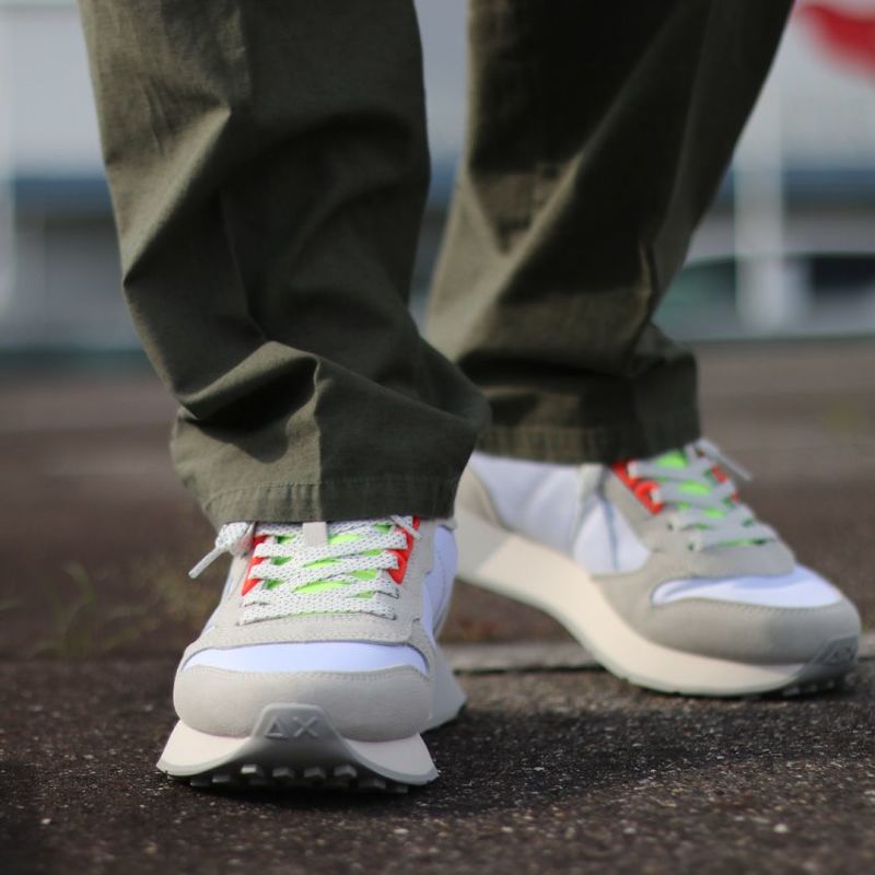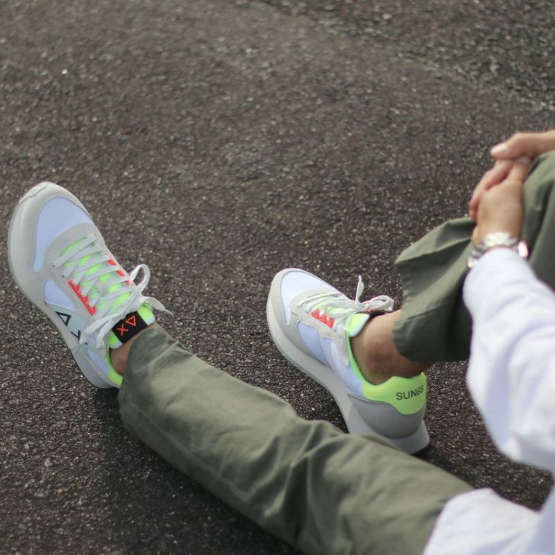また、部分的にあしらわれた蛍光色の切り替えが目を惹く一足に仕上がっています。
