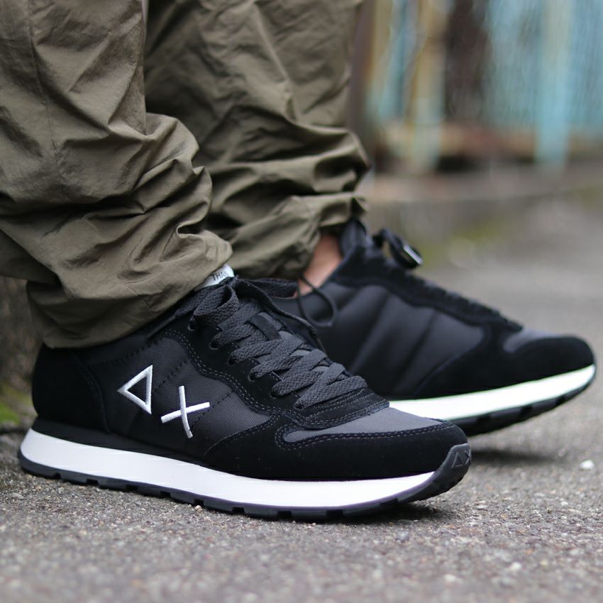 ブラックベースのスタイリッシュなデザインで大人の休日カジュアルに最適。