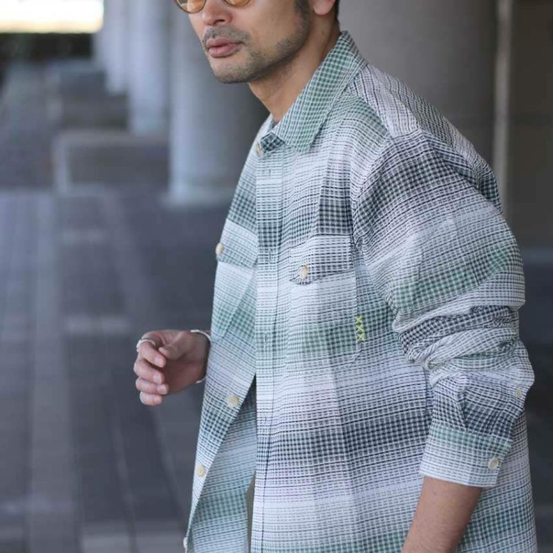 フロントの両側にポケットをあしらったCPOシャツのようなディテール、裾がフラットになったデザインは、ジャケットライクな仕立てになっています。