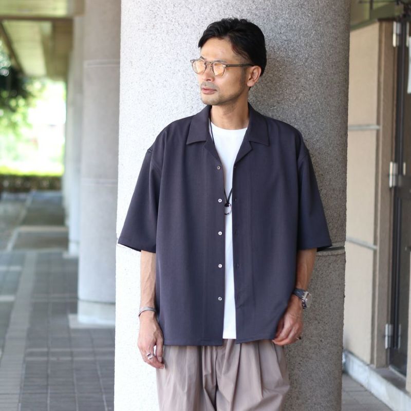 オープンカラーシャツは、小ぶりなボタンや表に出るステッチを極力省いた、ミニマルで洗練されたデザイン。