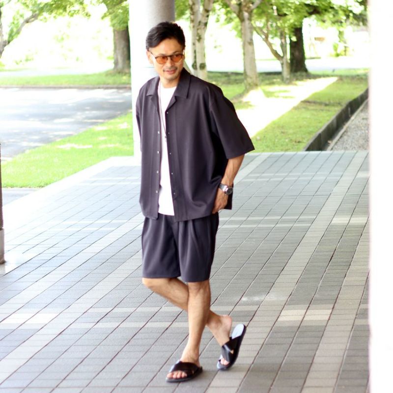 きれいめスラックスを合わせてスマートに着こなすのはもちろん、同素材のショーツ(品番:D25S-B023)とセットアップでの着用もおすすめです。
