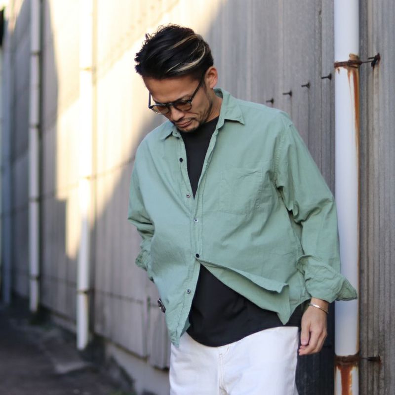 JOHNBULL/ジョンブル ガーメントダイレギュラーカラーシャツ JM251S03 長袖シャツ アイボリー グリーン