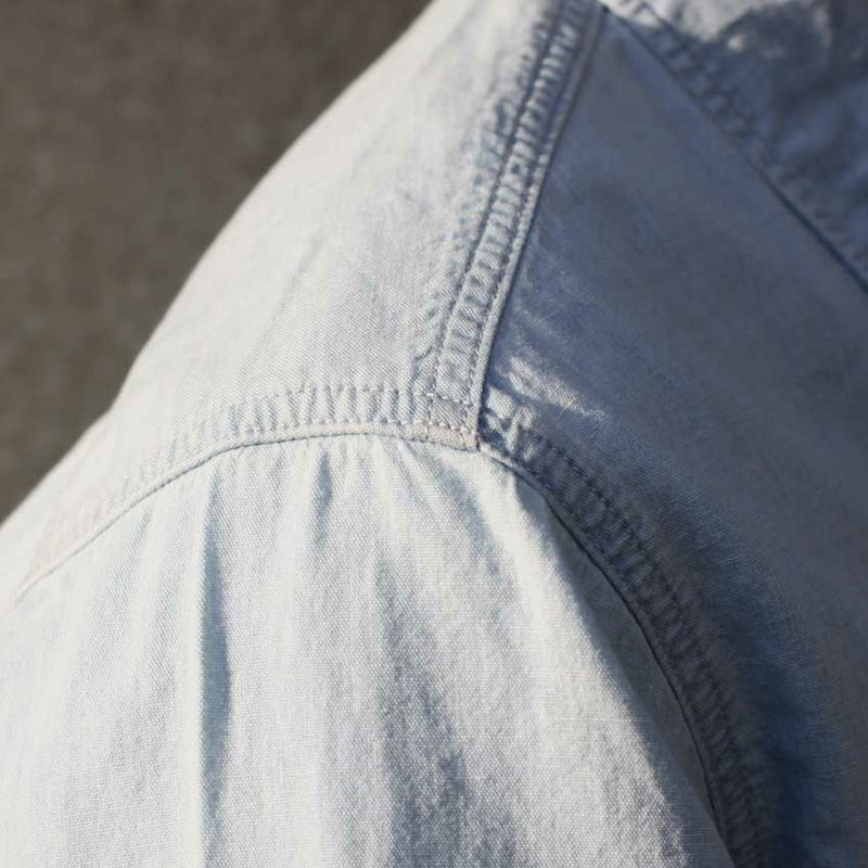 国産ブランド「ジョンブル」からデニムの表情をしたコットンリネンの混合素材シャンブレーシャツが登場。
